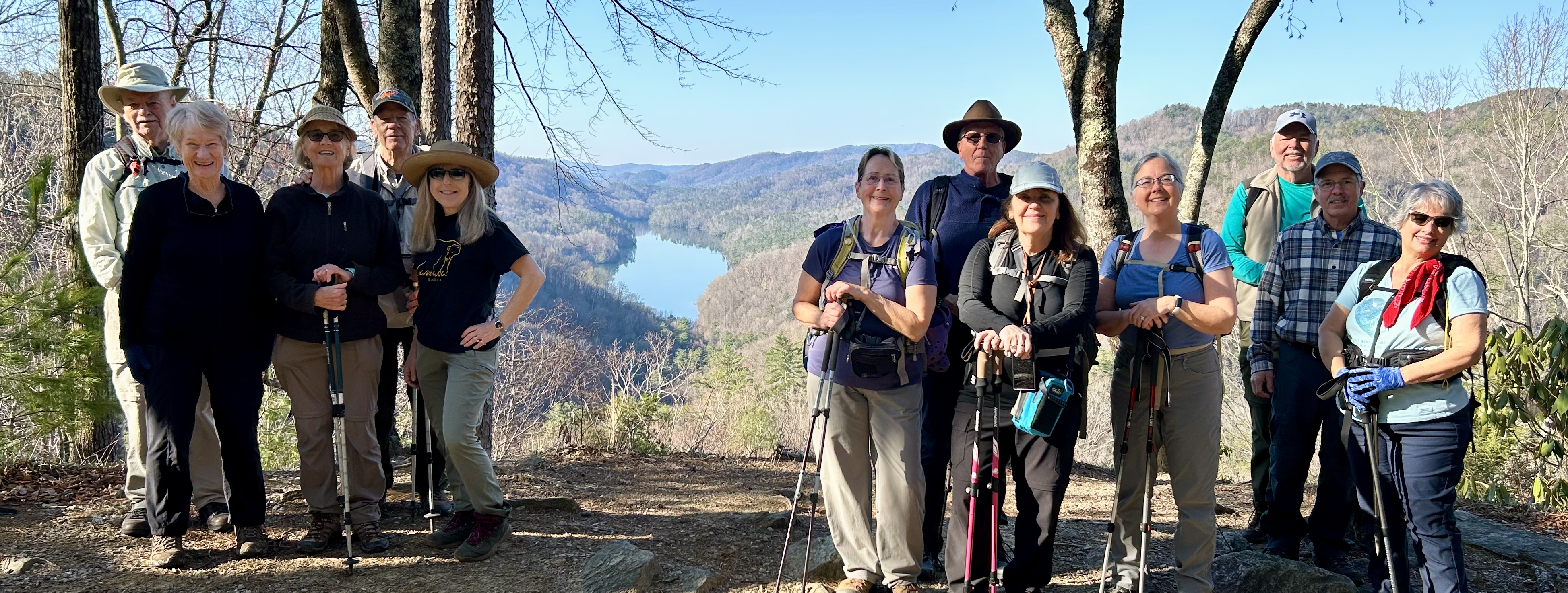 The Wanderers is an easy hiking group that targets 3 to 5 miles with less than 500 feet of climb. This group hikes at a rate of 1 to 2 miles per hour. Hikes range from the R1 to R5 difficulty level based upon the Pisgah Hikers rating scale. The group takes breaks on uphill sections of trails to rest, smell the flowers, enjoy the views and take pictures.